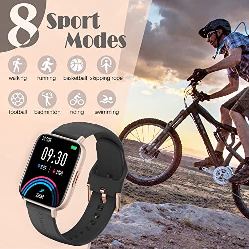Il tuo potente allenatore sportivo: lo smartwatch da donna dispone di 8 modalità sportive, come corsa, ciclismo, yoga, escursionismo, alpinismo, ecc. Supporta più lingue. Previsioni meteo, controllo della musica, fotocamera remota, cronometro, timer, sveglia, condivisione GPS, promemoria sedentario, modalità non disturbare, regolazione della luminosità, torcia, modalità cinema e altre funzioni pratiche. Può soddisfare le vostre esigenze quotidiane.