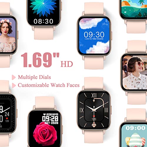 Chronus Smartwatch Donna, Orologio Smartwatch con Chiamata Bluetooth, 1,69" Orologio Fitness con Cardiofrequenzimetro da Polso Sonno Contapassi Musicale, Smart Watch Impermeabil per Android iOS Rosa