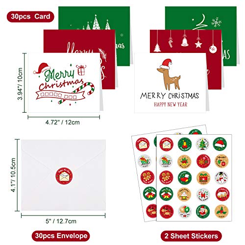 CHRORINE 30Pcs Biglietti di auguri natalizi con buste Biglietti per appunti natalizi 6 Disegni natalizi festivi Biglietti d'auguri natalizi