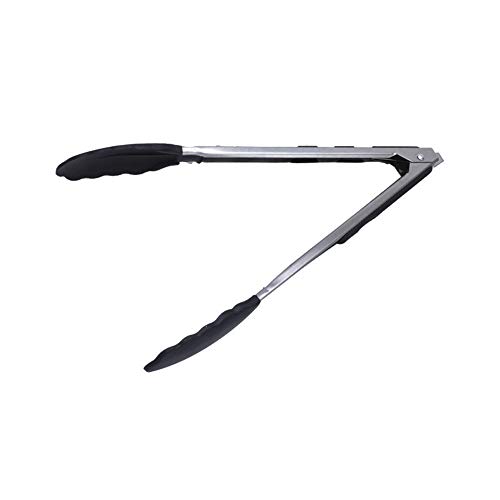 CHSG Pinze da Cucina Barbecue in Acciaio Inox e Silicone, Buffet con Anti-Graffiano Punte e Manico Impugnatura in Silicone Anti-Scivolo, per Alimenti Cucinare Torta, Forno (Nero,9 Pollici)