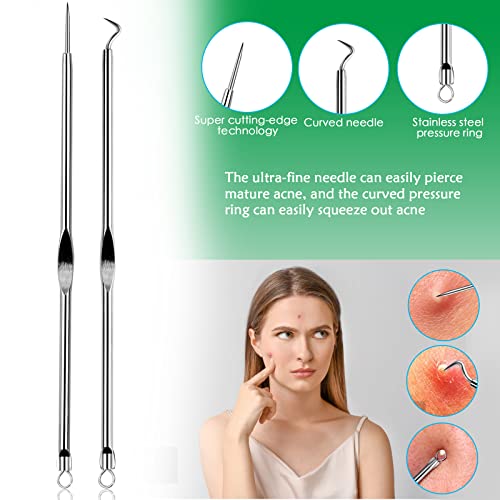 【Il pacchetto include】 Riceverai 4 aghi per acne a doppia estremità con punte e anelli di pressione, principalmente per il trattamento di acne e comedoni maturi, ecc. ;