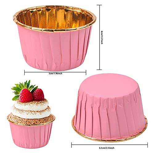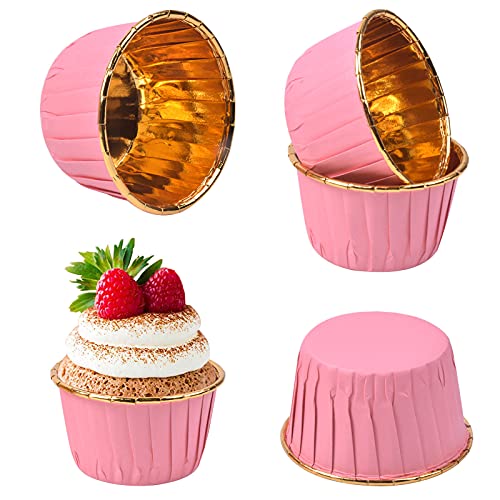 Chstarina 50 Pezzi Pirottini Alluminio per Muffin, Pirottini per Cupcake, Pirottini di Carta da Forno USA e Getta, Stampi per Muffin, Tazze da forno per Feste, Matrimoni, Feste di Compleanno (rosa)