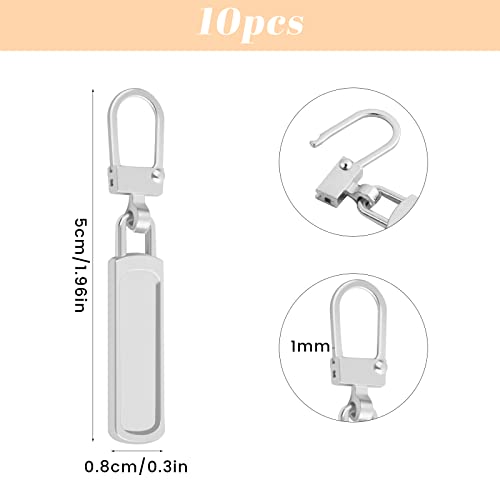 Chstarina 10 Pezzi Tiretti per Cerniere, Chiusura Lampo di Ricambio, Linguette in Metallo per Riparazione Zip, Tiralampo di Sostituzione per Giacca, Valigia, Zaino, Jeans (Argento)