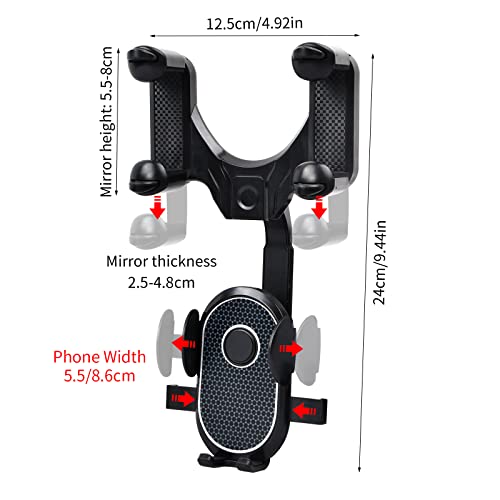 【Ampiamente compatibile】 Il supporto per telefono veicolare è adatto per specchietti retrovisori di 2,5-4,9 cm di spessore e 5,5-8 cm di altezza, per smartphone di 5,5-8 cm di larghezza. Si prega di verificare se queste dimensioni si adattano alla propria auto e al telefono prima dell'acquisto.
