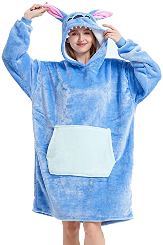 Chuangminghangqi Coperta Morbida con Cappuccio Uomo Calda Felpa Coperta Gigante con Maniche Donna Unisex Adulti Plaid Indossabile da Divano con Oversize Tasca(Blau, S)