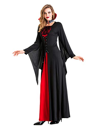 Chuangminghangqi Costume da Strega Vampiro- Cosplay Vestito Lungo costumi Halloween Carnevale Donna Oversize Abito Manica Lunga (nero, medium)