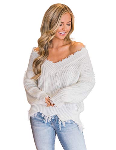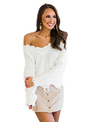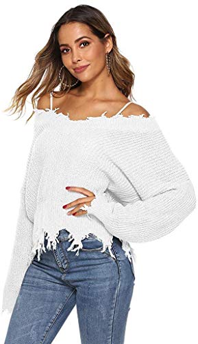 Chuangminghangqi Maglione Donna Maglione Oversize Donna Felpa Donna Maglione Donna Invernali Primavera Manica Lunga Pullover Donna (Bianco, XL)