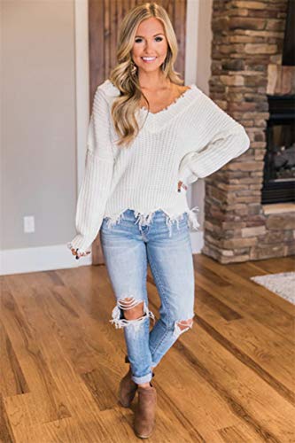 Caratteristica: maglione con scollo a V da donna, maglione a maniche lunghe, pullover in tinta unita, maglia ampia allentata è facile da abbinare a jeans, leggings o pantaloni.
