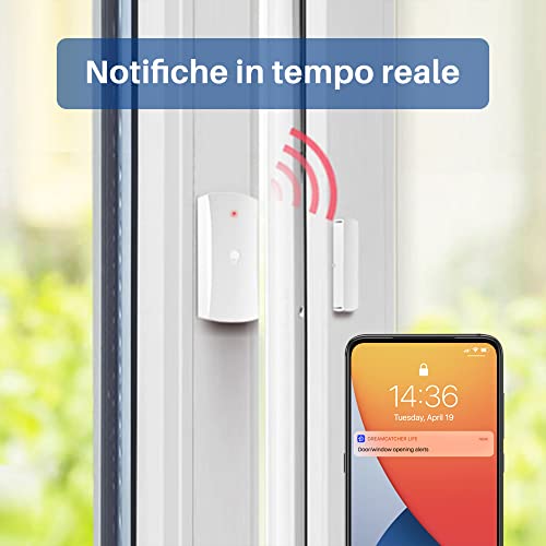 MONITORAGGIO IN TEMPO REALE - Il rilevatore porta/finestra rileva in tempo reale se una finestra o una porta vengono aperte e invia immediatamente un segnale alla stazione base Chuango che attiva l'allarme. Una notifica push viene inviata sull'app.