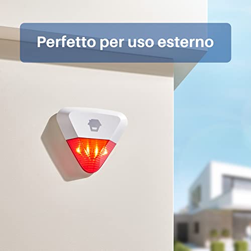 MEGLIO DI QUALSIASI CANE DA GUARDIA - Forte, vistoso e difficile da manipolare. La sirena da esterno dissuade gli intrusi suonando una sirena penetrante da 105 db e facendo lampeggiare una luce rossa stroboscopica a LED, avvisando vicini e passanti.