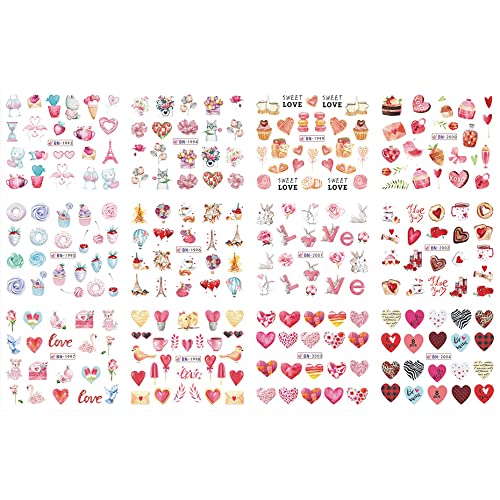 CHUANGOU Adesivo per Unghie, Adesivi per Unghie Fai, Decalcomanie per Nail Art, Adesivi Nail Art a Forma di Cuore per Decorazioni per San Valentino