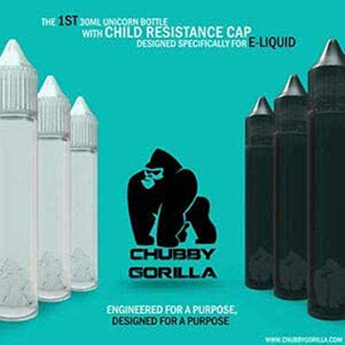 Chubby Gorilla Bottiglie V3 30ml Stubby PET in plastica per unicorno per liquidi, oli ed e-liquid - Bottiglie vuote con contagocce - 10x 30ml (bottiglia trasparente con tappo nero)