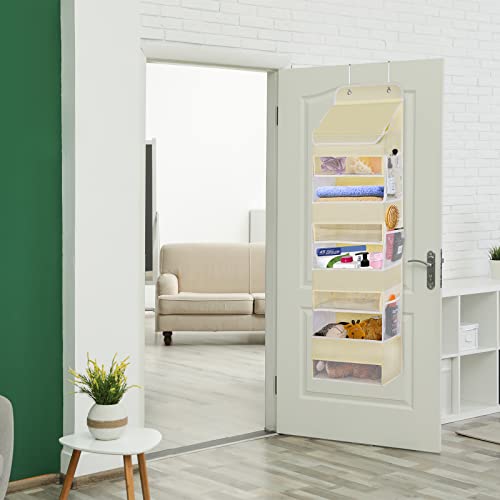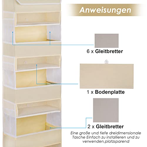 Chuboir Organizer da appendere con 4 tasche e 6 tasche laterali, 2 ganci in metallo, mensola da appendere a parete, custodia per cameretta dei bambini, bagno, ufficio, porta (beige)