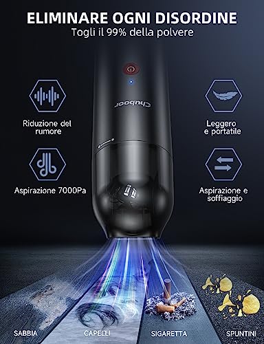 Chuboor Aspirapolvere Auto, Aspirabriciole 7000Pa Aspirazione Aspirapolvere Portatile Design Ultraleggero Con Multi-filtrazione HEPA Autonomia 25 Min USB Ricaricabile Per Casa/Auto/Animali (Nero)
