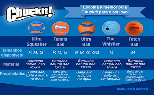Chuck It! Palla per cani ultra squeaker, giocattolo galleggiante in gomma resistente ad alto rimbalzo, compatibile con piccoli lanciatori, blu e arancione, piccola, confezione da 2