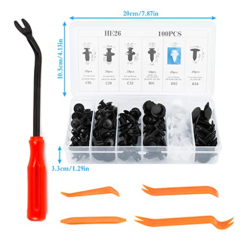 Chudian 100 Pezzi Clip di Fissaggio per Auto Universale Plastica Rivetti Auto Clip da Portiera da 6 Dimensioni,con 5 Pezzi Strumento di Rimozione Pannello della Porta Smontaggio Plastica Auto