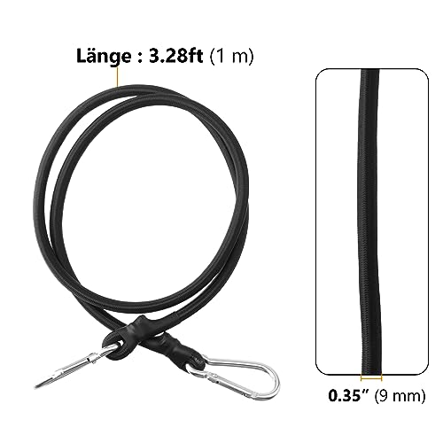 (Materiale durevole) Materiale in lattice e nylon di alta qualità, la chiusura è in acciaio inossidabile, elastico con moschettone ha una buona resistenza allo strappo e all'abrasione, elevata capacità di carico, l'elastico di questo gancio per cinghia può essere allungato fino a 2,5 volte la sua lunghezza, non facilmente deformata o danneggiata da molti anni di utilizzo.