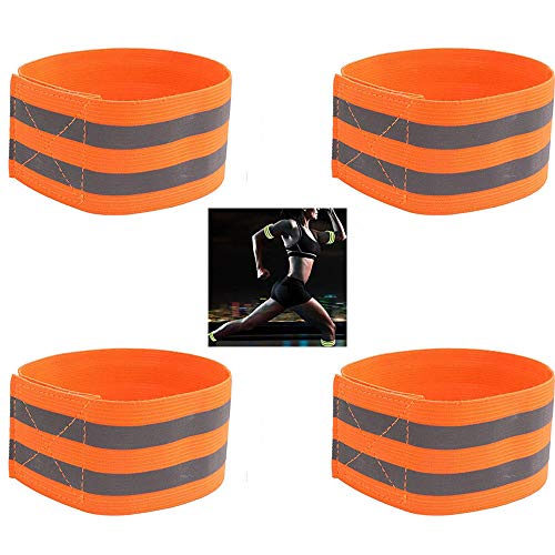 CHUER Riflettente per Sicurezza Bracciale di Sport Strisce Riflettenti per Braccio e Cinturino alla Caviglia per l'esecuzione di Sicurezza, Jogging, Mountain Bike, Braccialetti, Bracciali-4Pcs