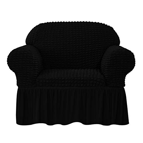 CHUN YI 1-Pezzo Copridivano con Gonna Elasticizzato Copertura Divano Elastico Due Posti Tre Posti Jacquard Tessuto Copripoltrona (Sedia, Nero)