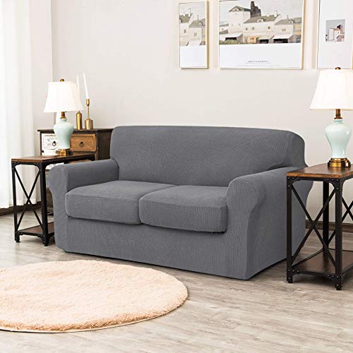 CHUN YI Corpridivano Elasticizzato con Copricuscino Separato, Copridivano 2 Posti con 2 Copricuscini per Soggiorno, per Proteggere Il Divano (2 Posti, Grigio Chiaro)