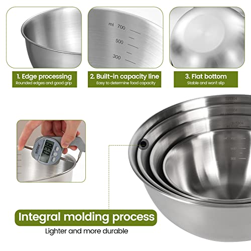 Chuner Set di 4 Ciotole Acciaio Inox Cucina con 4 Dimensioni (0,7 l/ 1,2 l/ 1,8 l/ 2,5l) Impilabili e Lavabili in Lavastoviglie