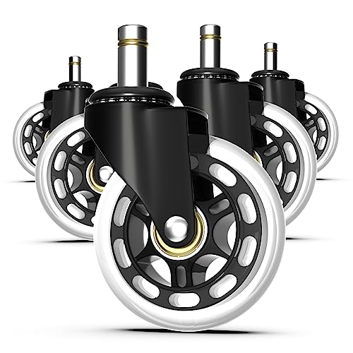 Chuner Ruote Sedia Ufficio 5 Pezzi, Rotelle per Sedie da Gioco, 10X 22MM Ruote di Ricambio Universali Silenziose e AntiGraffio, 5 Pezzi Rotelle Sedia Ufficio per Piastrelle, Pavimenti Duri, Laminata