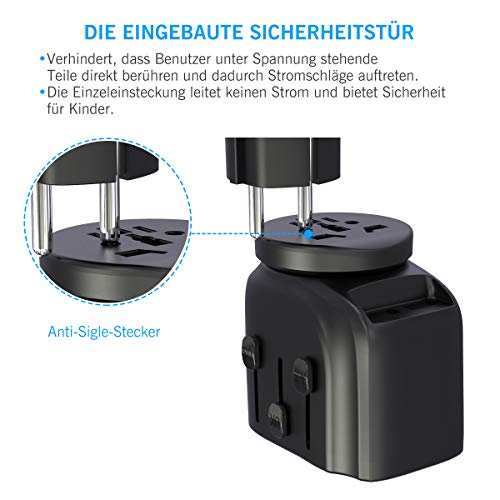 [Adattatore da viaggio universale 2 in 1]: questo adattatore da viaggio supporta spina UK/US/EU/AUS. Terra, più sicuro. Spina europea separata supporta una potenza massima di 16A-4000W per uso singolo. Collegato all'adattatore principale struttura 2 in 1, supporta max. 10A-2500W. Con 2 porte USB intelligenti, ogni porta ha una corrente massima di uscita di 2,4 A. Questa presa è adatta per elettrodomestici ad alte prestazioni come asciugacapelli, ferro da stiro, laptop, prodotti digitali ecc.