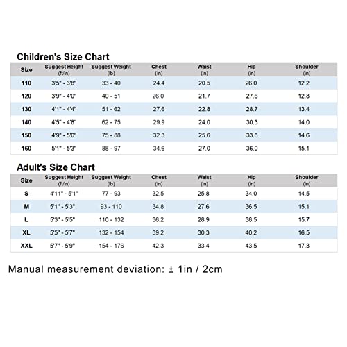 ❤ Dimensioni complete: abbiamo una taglia completa per bambini e adulti a vostra scelta. Si prega di scegliere la taglia in base al petto, alle spalle e alla vita.