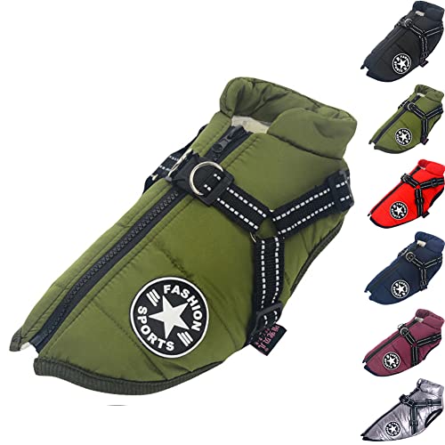 Chytaii Cappotto per cani impermeabile, giacca invernale per cani, giacca calda, bulldog francese, giacca calda con pettorina per cani, maglione antivento per cani, verde S