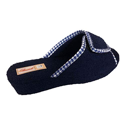 Ciabatta Donna A Punta Aperta in Spugna Regolabile con Strappo Leggera Tacco 4 CM con Interno Sughero Suola Antiscivolo Articolo 1191 (Blu, 37)