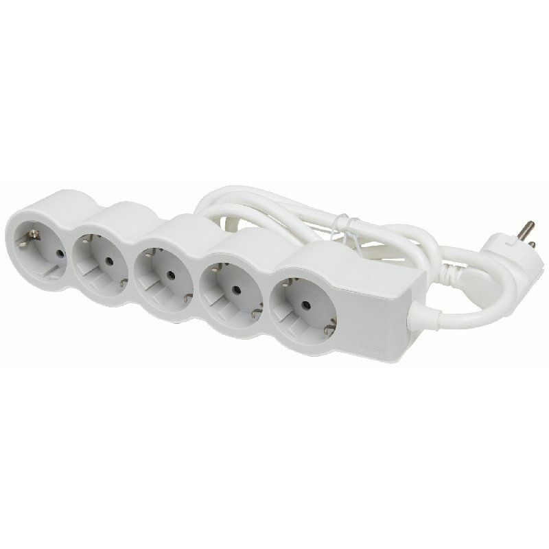 Presa multipla standard 5 prese 2P+T. Cavo 5 m Presa multipla standard con 5 prese 2P+T. 16A 230V 3680W MAX. È dotato di una presa angolata a 90° per poter collegare un trasformatore senza bloccare un'altra presa. Le altre prese sono angolate a 45°. Forma piatta per scivolare sotto i mobili. Materiale in polipropilene. Cavo in PVC 3G bianco 5m 3x1,5mm². Prodotto universale per uso interno. Design e qualità esclusivi Legrand. Colori bianco e grigio chiaro.