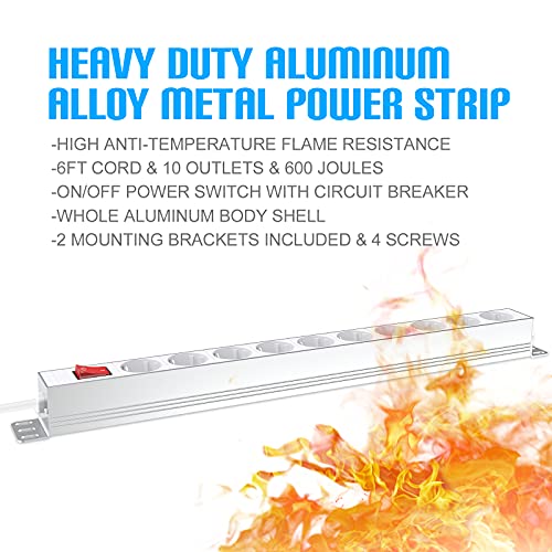 Ciabatta elettrica con 10 prese con protezione da sovratensioni. La ciabatta Ohuo a 10 prese con cavo da 1,8 m, alloggiamento in alluminio integrato, ha un bell'aspetto in bianco e alluminio. Dotato di interruttore on/off e protezione da sovratensione, contatto di protezione, abbastanza sicuro per l'uso.