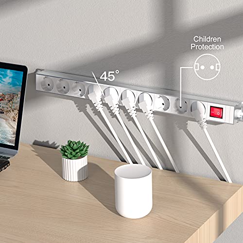 Ciabatta elettrica da parete: la presa con protezione da sovratensione dispone di 2 supporti di montaggio, viene fornita con viti di fissaggio, che consentono il fissaggio su quasi tutte le superfici che si trovano dietro mobili, televisori, scrivanie, centri multimediali e banco da lavoro. Poiché la barra si può fissare bene anche alla parete grazie ai supporti.