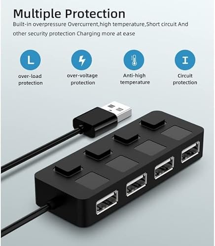 Hub USB 2.0, Ciabatta multipresa USB, 4 Porte con Singoli Interruttori ON/OFF e Spie LED, per PS4/PS5, PC da gioco, laptop, stampante, MacBook