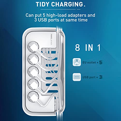 【5 prese di elettriche e 3 presa USB】Adattatore 5 prese schuko tedesche,MAX 3.1A Grazie alle 3 prese USB, puoi ricaricare 3 oggetti contemporaneamente, sfruttando una corrente massima di 2.4a, Stazione di ricarica per tablet e smartphone