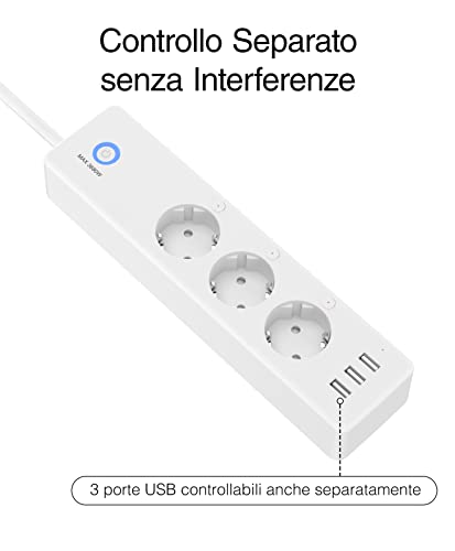 3 Prese di Controllo Individuali + 3 Porte usb -- Supporta 6 dispositivi contemporaneamente con 3 smart presa controllabili indipendentemente e 3 porte usb sempre attive. Ideale per caricare dispositivi a casa e in ufficio.