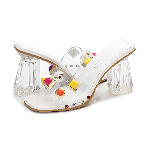 Ciabatte infradito Trasparente Grosso Tacco Sandali Estate Freddo Tacchi alti Colore diamante ciabatte infradito elegante Testa quadrata Morbido Scarpe da donna vestito Tacchi alti-multicolor||44
