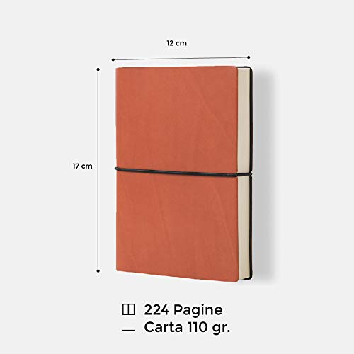 Ciak Notebook Classic con Pagine a Puntini, Taccuino Copertina in Finta Pelle Liscia e Chiusura ad Elastico, Fatto a mano, Colore Arancio, Dimensione 12 x 17 cm, Made in Italy