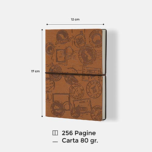 Ciak Notebook Travel con Pagine Bianche e a Righe, Taccuino da Viaggio Copertina in Finta Pelle Liscia e Chiusura ad Elastico, Fatto a mano, Colore Marrone, Dimensione 12 x 17 cm, Made in Italy