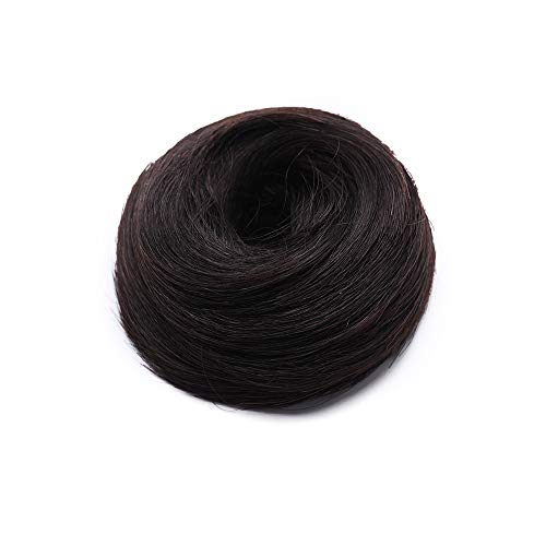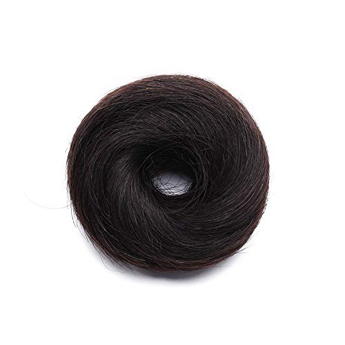 Ciambella per Chignon Extension Capelli Veri Lisci Elastico Voluminoso Coda Magic Hair Bun Updo Crocchia 17g #1B Nero Naturale