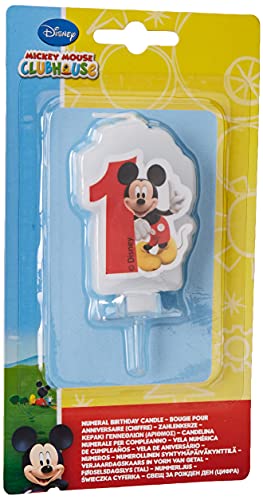 Ciao- Candelina numerale Disney Mickey Mouse Club House Numero 1, Rosso, Bianco, 83149