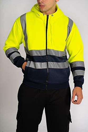 Ciao Vis Viz Felpe con cappuccio di sicurezza in pile Felpe da lavoro Due Toni con cerniera ad alta visibilità Sicurezza Felpe con cappuccio GO/RT Compliant Jumpers, Giallo/blu navy., M