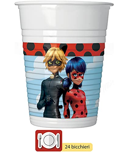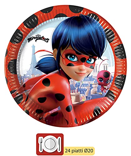 Contenuto: 24 piatti carta ø23cm, 24 piatti carta ø20cm, 24 bicchieri plastica 200ml, 40 tovaglioli carta 33x33cm