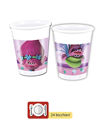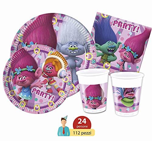 Ciao-Kit Party Tavola Trolls persone (112 pezzi Ø23cm, piatti Ø20cm, 24 bicchieri, 40 tovaglioli), Multicolore, Y4326
