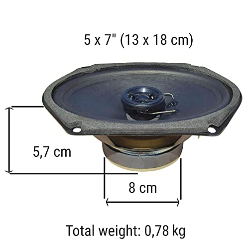 Diffusore da 5 x 7" 13 x 18 cm a 2 vie molto potente e molto compatto con sospensione in poliuretano. Tutti e due garantiscono un suono nitido e potente, ben controllato ma anche pulito, sempre, in ogni circostanza. Il rapporto qualità/prezzo poi è elevatissimo.