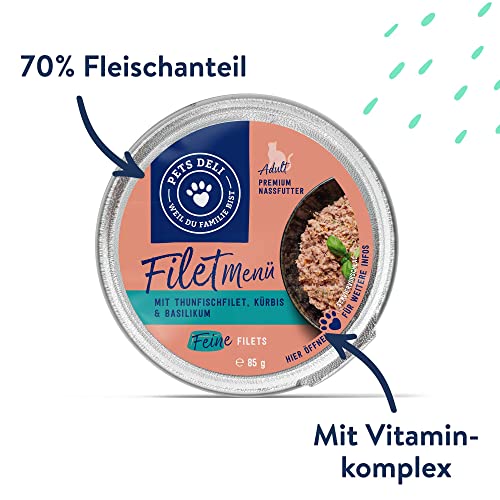 DELIZIOSI SAPORI: La nostra pratica confezione multipla di cibo per gatti Pets Deli contiene delizioso "tonno e filetto di tacchino".