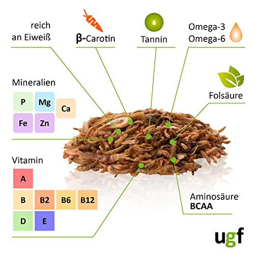 100% NATURALE - Il nostro insetto essiccato è un prodotto naturale al 100% senza conservanti o coloranti. È confezionato in un secchio riciclabile facile da conservare, non puzzolente, che mantiene i vermi sia all'interno che in un unico pezzo, preservando l'alta qualità.