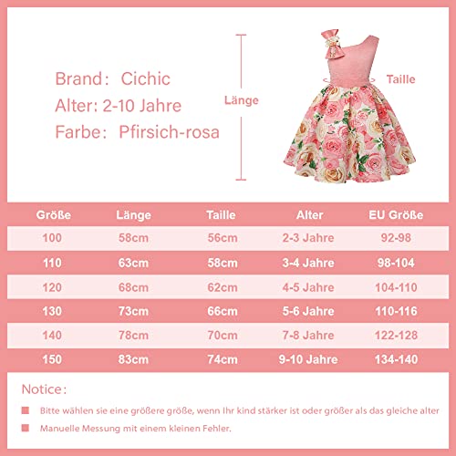 Cichic - Vestito da bambina elegante da principessa, per matrimoni, compleanni, stile formale, 2-10 anni Pesca rosa. 9-10 Anni