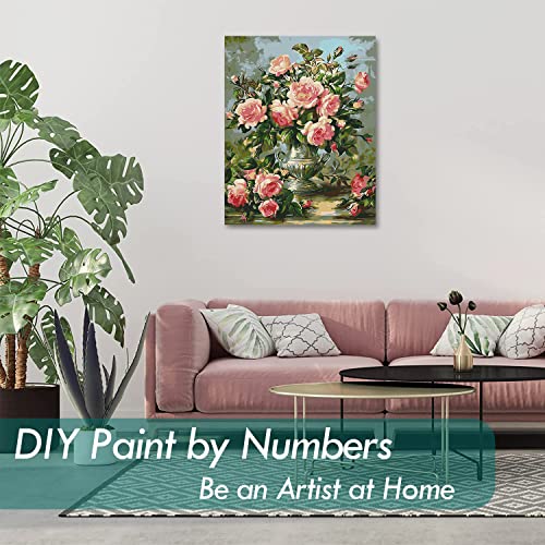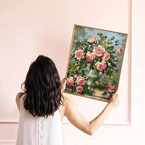 CICISTORY Dipingere con i Numeri Adulti, Kit Pittura Acrilica a Olio su Tela Fai-da-Te per Adulti Bambini Principianti Paint by Numbers 40x50cm (senza Cornice)-Rose rosa