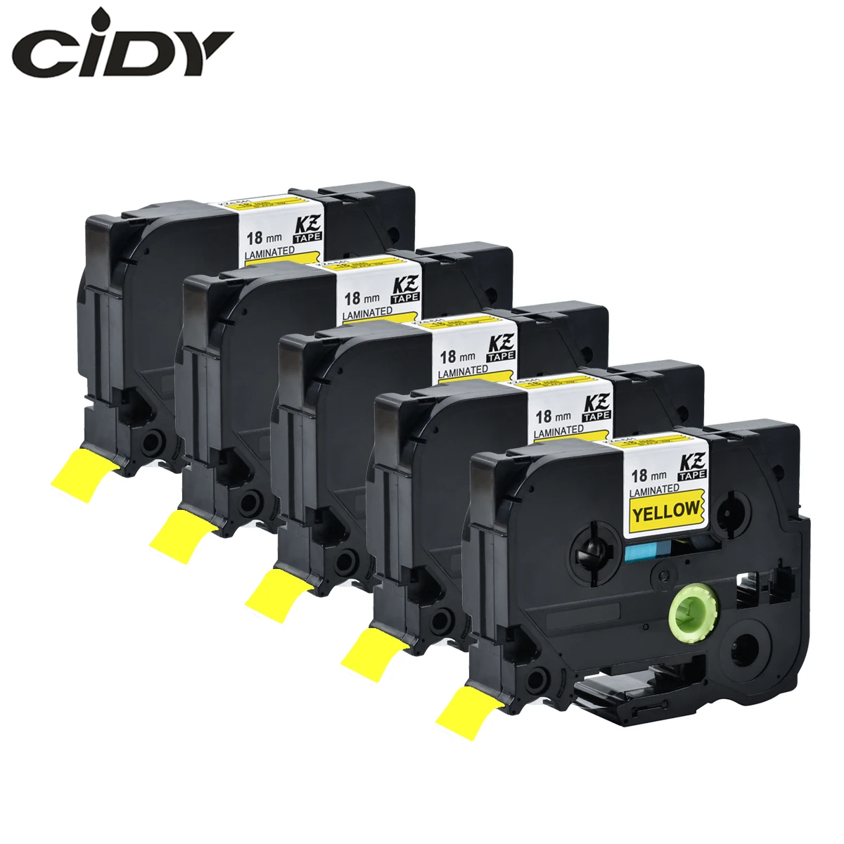 CIDY 5pcs Compatible p touch laminated tze 641 tz641 tze641 tape 18mm Black on Yellow Tape tze-641 tz-641 for brother printers